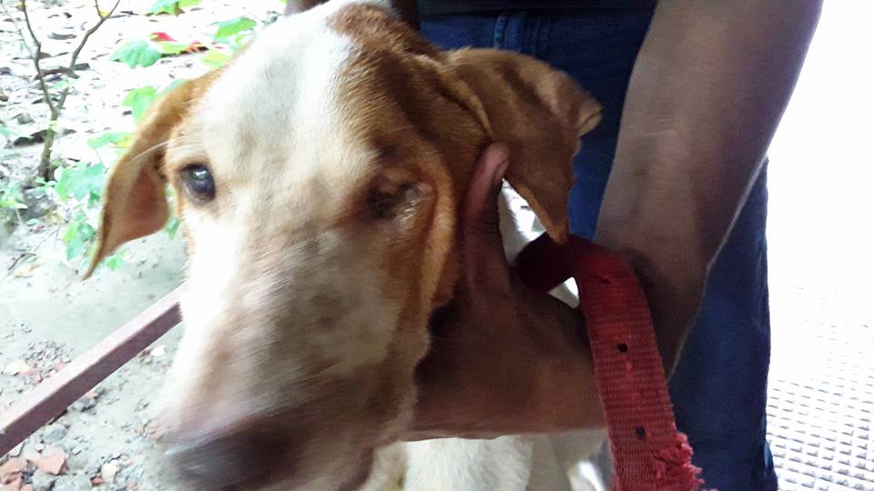 Avimanyu of mahavarata died as he could not see the way of coming out of the traps… This baby our AVIMANYU is also blind. Cannotsee, both eyes damaged. But we will try our best to hold his hand n take him out from darkness. Yes there is internal injury n bleeding from mouth…but he is a fighter still as docile n as gentle as he can be…thank u RiaBhattacharjee n her husband for dropping him to our shelter. Thanks to our vets who considering his condition, came very fast n treatment started ASAP.Very special n expensive meds are being used for fastest recovery. Operating the eyeball out is the last option.