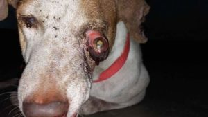 the other affected eye is much better…has opened properly…the much wounded eye is also little better… No bleeding is occurring. He is looking littlefresh. Saline is being given. But he had one piece of chicken today morning…life risk is still there though reduced a little as there was internal haemorrhage. After he stabilizes vets will decide whether eye will be operated or treated with meds only…
