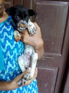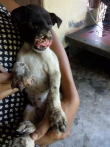 One of the most horrible cases we have come across.She has been with us since last 2 3 days and is under constant observation.She can’t eat anything orally only a few drops of lactogen is being fed by cotton just to keep her tongue moving.She is on drips at 6hours interval.Temperature is high 103.She is drooling and not active at all,in severe trauma.